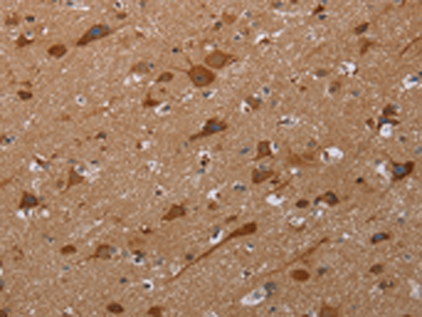 The image is immunohistochemistry of paraffin-embedded Human brain tissue using P11943(REG3A Antibody) at dilution 1/20. (Original magnification: ×200) |