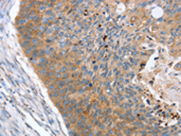 The image is immunohistochemistry of paraffin-embedded Human esophagus cancer tissue using P05052(REG3A Antibody) at dilution 1/40. (Original magnification: ×200) |