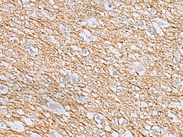 The image is immunohistochemistry of paraffin-embedded Human brain tissue using P12106(RHCG Antibody) at dilution 1/40. (Original magnification: ×200) |