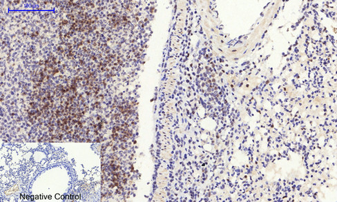 Immunohistochemistry analysis of paraffin-embedded mouse lung tissue using Rho A antibody. High-pressure and temperature Sodium Citrate pH 6.0 was used for antigen retrieval.Negative control was used by secondary antibody only. |