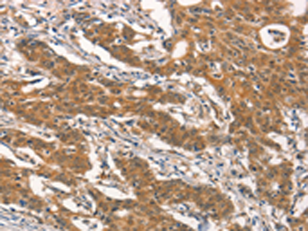 The image is immunohistochemistry of paraffin-embedded Human gastric cancer tissue using P11704(RHOBTB2 Antibody) at dilution 1/30. (Original magnification: ×200) |