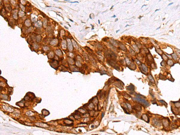 The image is immunohistochemistry of paraffin-embedded Human colorectal cancer tissue using P03577(RHPN2 Antibody) at dilution 1/85. (Original magnification: ×200) |