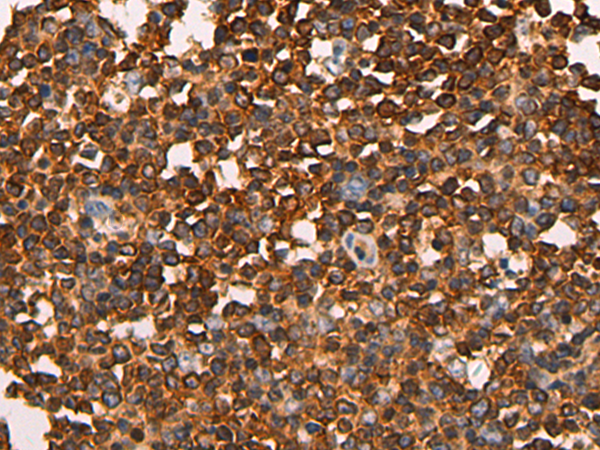 The image is immunohistochemistry of paraffin-embedded Human tonsil tissue using P03577(RHPN2 Antibody) at dilution 1/85. (Original magnification: ×200) |