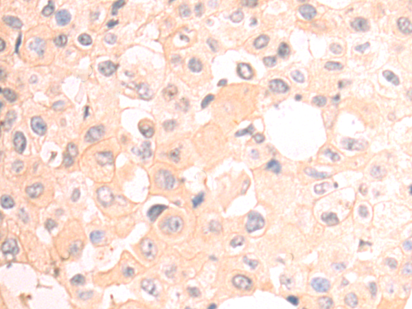The image is immunohistochemistry of paraffin-embedded Human breast cancer tissue using P03499(RILPL1 Antibody) at dilution 1/70. (Original magnification: ×200) |