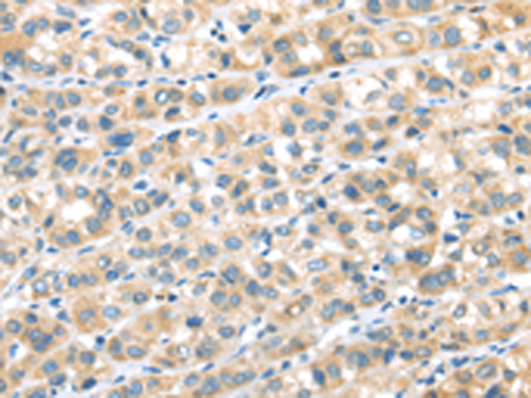 The image is immunohistochemistry of paraffin-embedded Human esophagus cancer tissue using P05226(RIPK4 Antibody) at dilution 1/40. (Original magnification: ×200) |