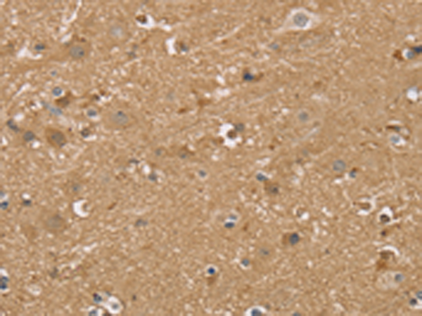The image is immunohistochemistry of paraffin-embedded Human brain tissue using P12110(RNF139 Antibody) at dilution 1/35. (Original magnification: ×200) |