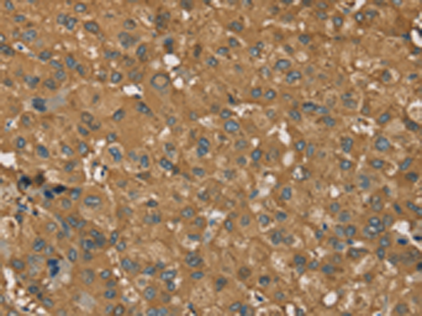 The image is immunohistochemistry of paraffin-embedded Human liver cancer tissue using P12117(RORB Antibody) at dilution 1/35. (Original magnification: ×200) |