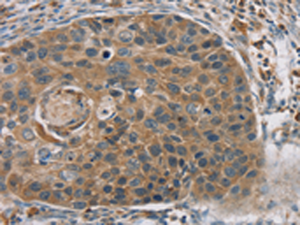 The image is immunohistochemistry of paraffin-embedded Human esophagus cancer tissue using P12117(RORB Antibody) at dilution 1/35. (Original magnification: ×200) |