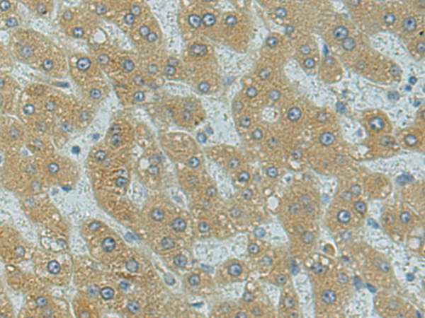 The image is immunohistochemistry of paraffin-embedded Human liver cancer tissue using P02846(RPL17 Antibody) at dilution 1/130. (Original magnification: ×200) |