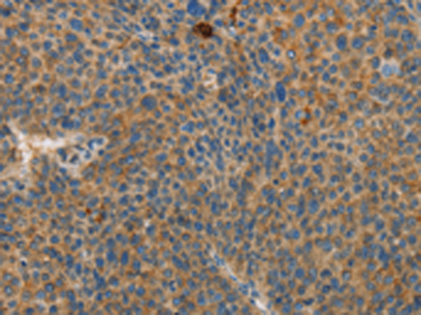 The image is immunohistochemistry of paraffin-embedded Human liver cancer tissue using P06948(RPS27 Antibody) at dilution 1/25. (Original magnification: ×200) |