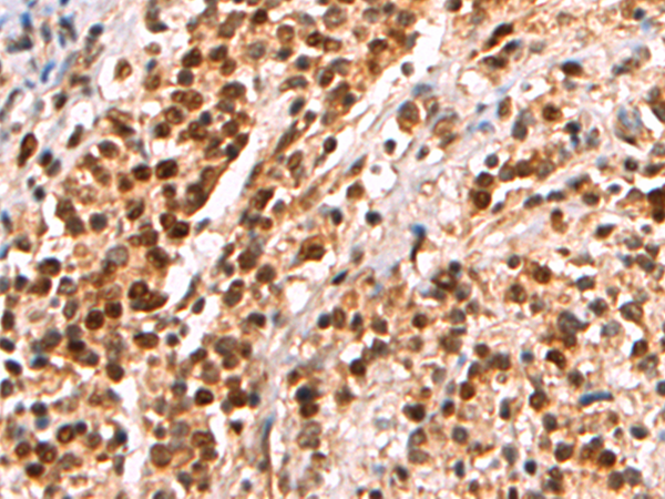 The image is immunohistochemistry of paraffin-embedded Human gastric cancer tissue using P03551(RPUSD2 Antibody) at dilution 1/205. (Original magnification: ×200) |