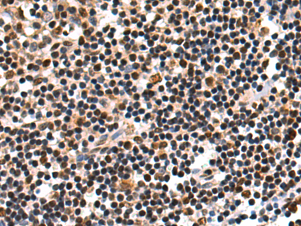 The image is immunohistochemistry of paraffin-embedded Human tonsil tissue using P03551(RPUSD2 Antibody) at dilution 1/205. (Original magnification: ×200) |