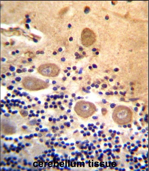 RTDR1 Antibody (N-term) (Cat. #P31250)immunohistochemistry analysis in formalin fixed and paraffin embedded human cerebellum tissue followed by peroxidase conjugation of the secondary antibody and DAB staining.This data demonstrates the use of RTDR1 Antibody (N-term) for immunohistochemistry. Clinical relevance has not been evaluated. |