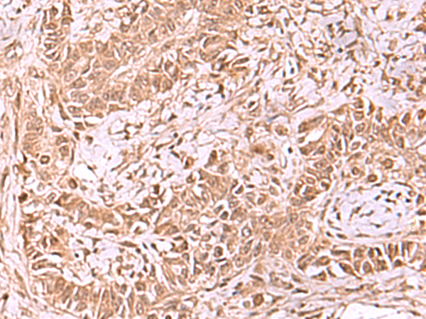 The image is immunohistochemistry of paraffin-embedded Human ovarian cancer tissue using P02742(RUVBL1 Antibody) at dilution 1/65. (Original magnification: ×200) |