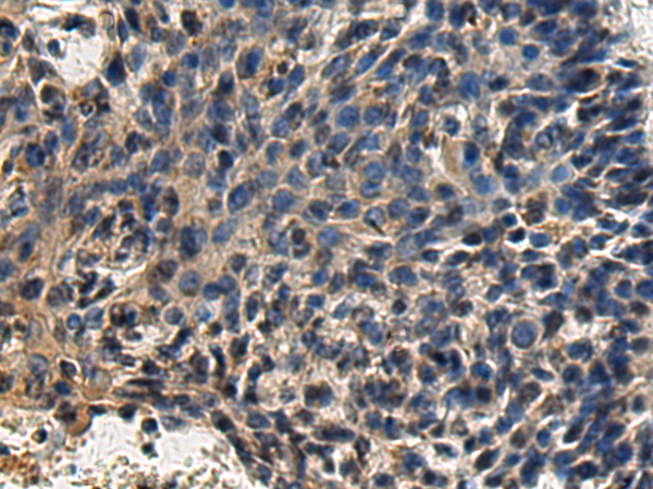 The image is immunohistochemistry of paraffin-embedded Human esophagus cancer using P11404(S1PR2 Antibody) at dilution 1/60. (Original magnification: ×200) |