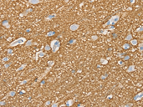 The image is immunohistochemistry of paraffin-embedded Human brain tissue using P12135(SCD Antibody) at dilution 1/25. (Original magnification: ×200) |
