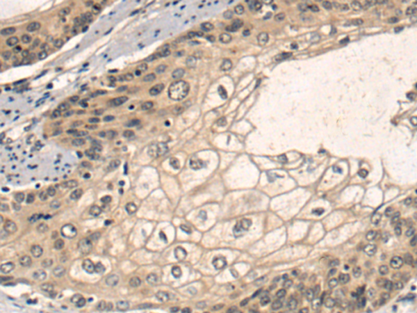 The image is immunohistochemistry of paraffin-embedded Human esophagus cancer tissue using P05251(SCD Antibody) at dilution 1/50. (Original magnification: ×200) |