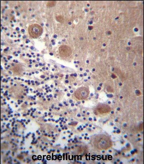 SCHIP1 Antibody (Center) (Cat. #P31177)immunohistochemistry analysis in formalin fixed and paraffin embedded human cerebellum tissue followed by peroxidase conjugation of the secondary antibody and DAB staining.This data demonstrates the use of SCHIP1 Antibody (Center) for immunohistochemistry. Clinical relevance has not been evaluated. |