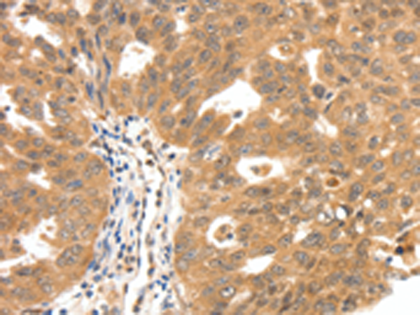 The image is immunohistochemistry of paraffin-embedded Human ovarian cancer tissue using P04442(SCN5A Antibody) at dilution 1/30. (Original magnification: ×200) |