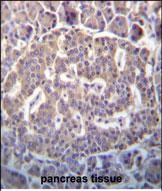SCYL1 Antibody (N-term) (Cat. #P31152)immunohistochemistry analysis in formalin fixed and paraffin embedded human pancreas tissue followed by peroxidase conjugation of the secondary antibody and DAB staining.This data demonstrates the use of SCYL1 Antibody (N-term) for immunohistochemistry. Clinical relevance has not been evaluated. |