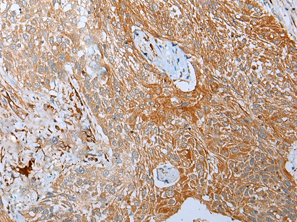 The image is immunohistochemistry of paraffin-embedded Human lung cancer tissue using P12558(SDCCAG8 Antibody) at dilution 1/20. (Original magnification: ×200) |