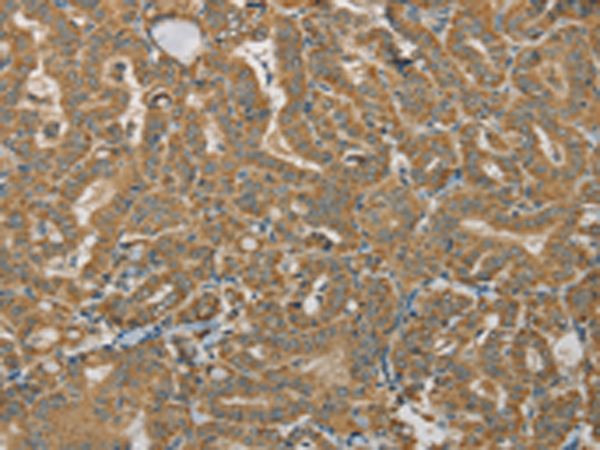The image is immunohistochemistry of paraffin-embedded Human thyroid cancer tissue using P12143(SDHB Antibody) at dilution 1/30. (Original magnification: ×200) |