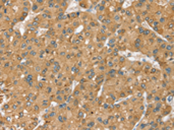 The image is immunohistochemistry of paraffin-embedded Human liver cancer tissue using P12144(SEC14L2 Antibody) at dilution 1/40. (Original magnification: ×200) |