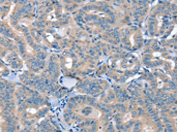 The image is immunohistochemistry of paraffin-embedded Human thyroid cancer tissue using P12147(SELENON Antibody) at dilution 1/20. (Original magnification: ×200) |