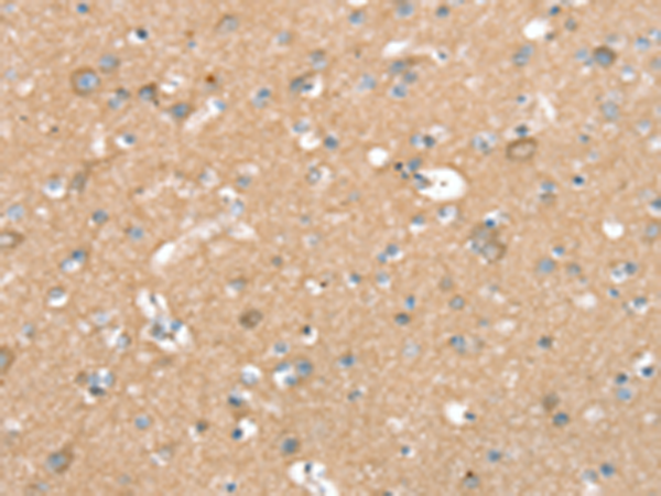 The image is immunohistochemistry of paraffin-embedded Human brain tissue using P12147(SELENON Antibody) at dilution 1/20. (Original magnification: ×200) |