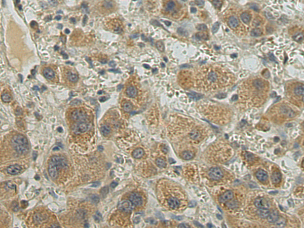 The image is immunohistochemistry of paraffin-embedded Human liver cancer tissue using P12149(SEMA6D Antibody) at dilution 1/30. (Original magnification: ×200) |