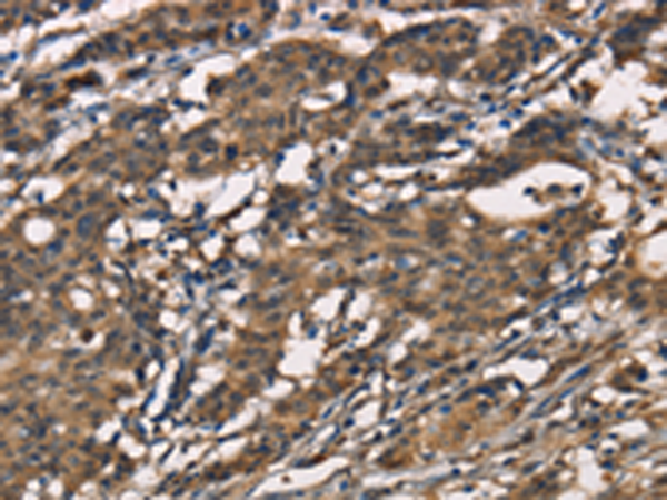 The image is immunohistochemistry of paraffin-embedded Human gasrtic cancer tissue using P04653(SENP1 Antibody) at dilution 1/40. (Original magnification: ×200) |