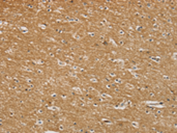 The image is immunohistochemistry of paraffin-embedded Human brain tissue using P05269(SENP3 Antibody) at dilution 1/35. (Original magnification: ×200) |