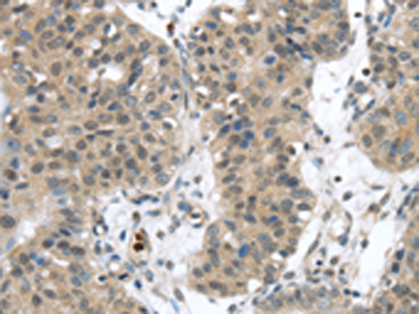 The image is immunohistochemistry of paraffin-embedded Human breast cancer tissue using P05270(SENP6 Antibody) at dilution 1/20. (Original magnification: ×200) |