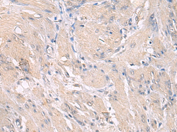 The image is immunohistochemistry of paraffin-embedded Human gastric cancer tissue using P03708(SERPINA3 Antibody) at dilution 1/30. (Original magnification: ×200) |