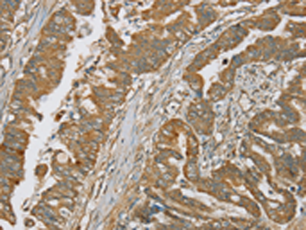 The image is immunohistochemistry of paraffin-embedded Human esophagus cancer tissue using P05277(SERPING1 Antibody) at dilution 1/20. (Original magnification: ×200) |