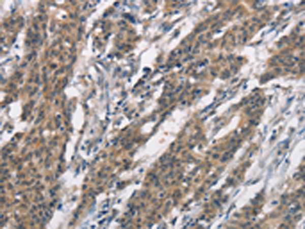 The image is immunohistochemistry of paraffin-embedded Human gastric cancer tissue using P11581(SH2B2 Antibody) at dilution 1/15. (Original magnification: ×200) |