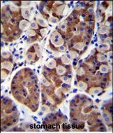 SH2D4B Antibody (C-term) (Cat. #P31009)immunohistochemistry analysis in formalin fixed and paraffin embedded human stomach tissue followed by peroxidase conjugation of the secondary antibody and DAB staining.This data demonstrates the use of SH2D4B Antibody (C-term) for immunohistochemistry. Clinical relevance has not been evaluated. |