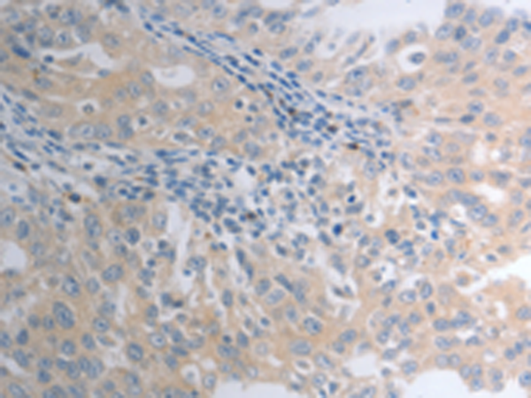 The image is immunohistochemistry of paraffin-embedded Human ovarian cancer tissue using P11110(SHH Antibody) at dilution 1/40. (Original magnification: ×200) |