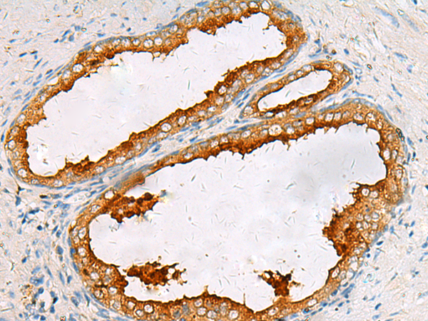 The image is immunohistochemistry of paraffin-embedded Human prostate cancer tissue using P05284(SIGLEC8 Antibody) at dilution 1/75. (Original magnification: ×200) |