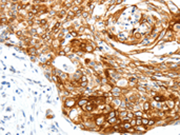 The image is immunohistochemistry of paraffin-embedded Human cervical cancer tissue using P11358(SIPA1 Antibody) at dilution 1/40. (Original magnification: ×200) |