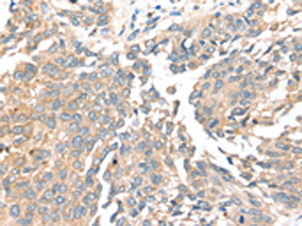 The image is immunohistochemistry of paraffin-embedded Human liver cancer tissue using P12174(SIRT4 Antibody) at dilution 1/35. (Original magnification: ×200) |