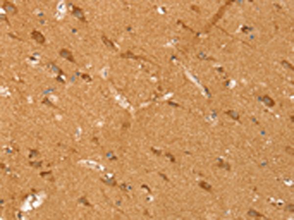 The image is immunohistochemistry of paraffin-embedded Human brain tissue using P05288(SIRT4 Antibody) at dilution 1/35. (Original magnification: ×200) |