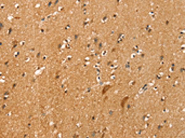 The image is immunohistochemistry of paraffin-embedded Human brain tissue using P12175(SLC16A3 Antibody) at dilution 1/20. (Original magnification: ×200) |