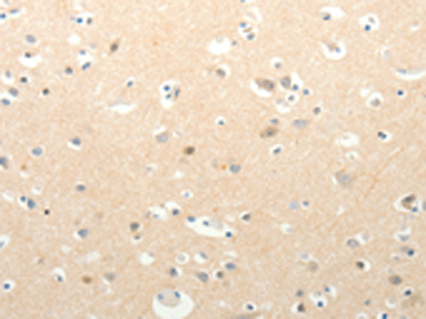 The image is immunohistochemistry of paraffin-embedded Human brain tissue using P03637(SLC18A1 Antibody) at dilution 1/13. (Original magnification: ×200) |