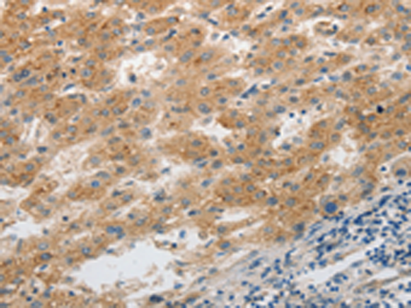 The image is immunohistochemistry of paraffin-embedded Human liver cancer tissue using P03883(SLC1A2 Antibody) at dilution 1/20. (Original magnification: ×200) |