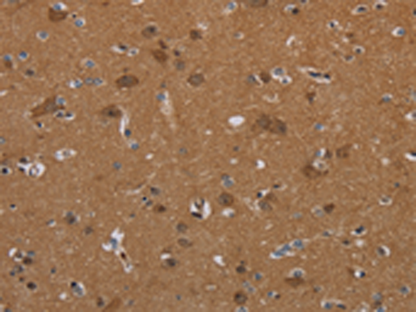 The image is immunohistochemistry of paraffin-embedded Human brain tissue using P05118(SLC22A2 Antibody) at dilution 1/30. (Original magnification: ×200) |