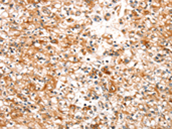 The image is immunohistochemistry of paraffin-embedded Human prostate cancer tissue using P05299(SLC25A12 Antibody) at dilution 1/30. (Original magnification: ×200) |
