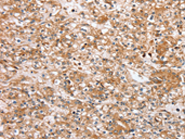 The image is immunohistochemistry of paraffin-embedded Human prostate cancer tissue using P05298(SLC25A20 Antibody) at dilution 1/30. (Original magnification: ×200) |
