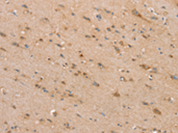 The image is immunohistochemistry of paraffin-embedded Human brain tissue using P05298(SLC25A20 Antibody) at dilution 1/30. (Original magnification: ×200) |