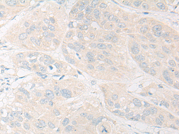 The image is immunohistochemistry of paraffin-embedded Human liver cancer tissue using P13248(SLC28A2 Antibody) at dilution 1/20. (Original magnification: ×200) |